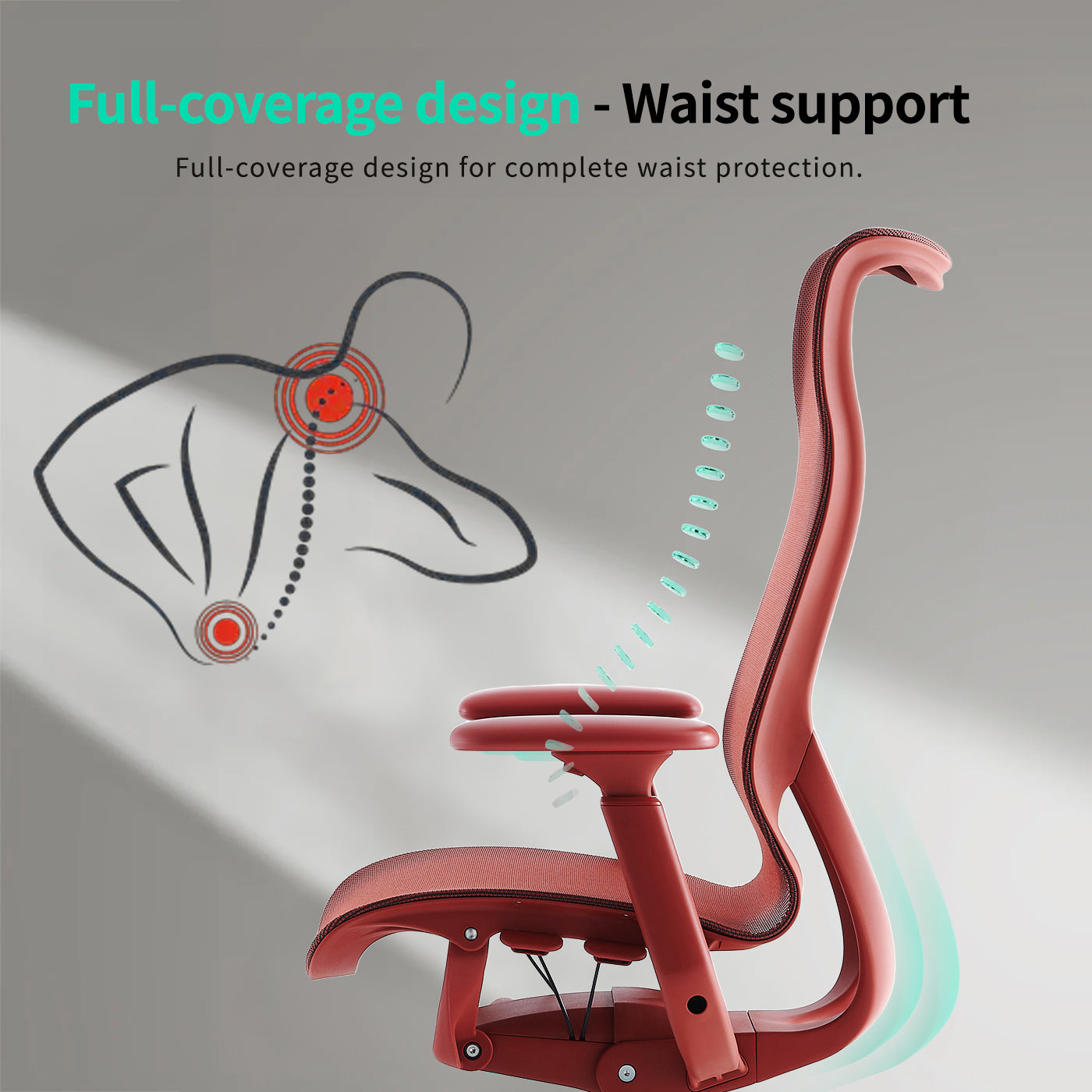 A large wrap around the waist with 8-way adjustment Enjoy long-time sitting